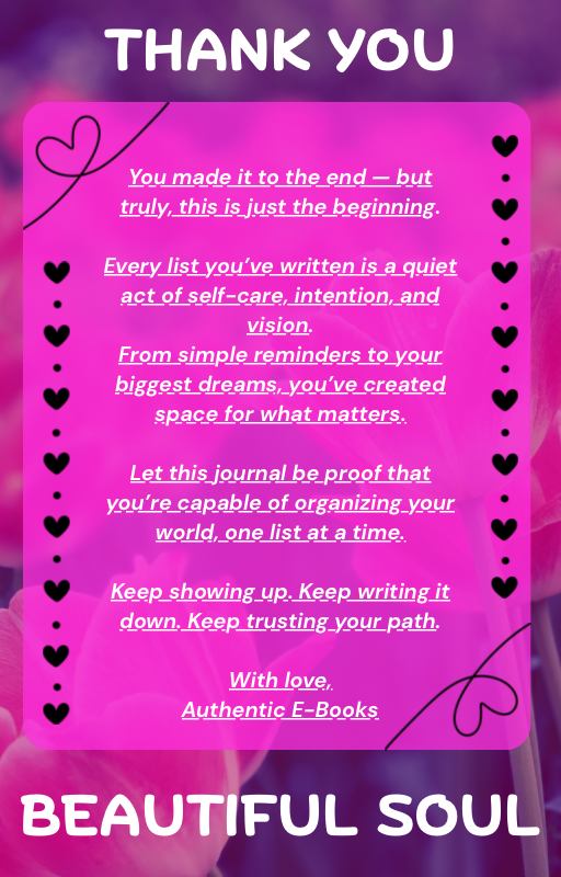 My List Journal is the ultimate digital journal designed to help you stay organized, intentional, and inspired every day. Whether you’re planning your grocery runs, tracking habits, creating bucket lists, organizing travel ideas, or dreaming up future goals—this beautifully designed journal keeps everything in one place.